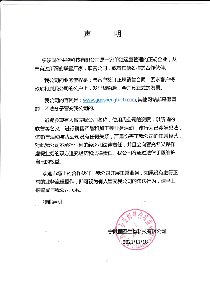 关于冒充宁陕国圣生物公司名义进行虚假销售操作的追责声明